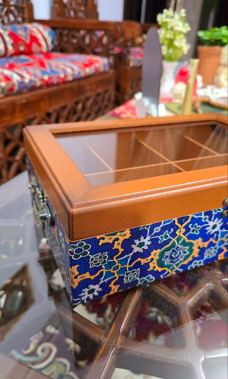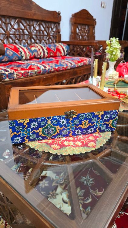 "این جعبه، هم برای چای، هم تنقلات! " جعبه تی بگ 5 خانه طرح سنتی، نه تنها برای ذخیره چای عالیه، بلکه مکانی مناسب برای قرار دادن تنقلات مورد علاقهات هم هست. هر بار که به سراغش میری، حس میکنی توی یک باغ سنتی ایرانی نشستی و از لحظات لذت میبری. @hasti_gallery58 @hasti_gallery58 اگه می خوای بدی و یا لطفا @hasti_gallery58 @hasti_gallery58 این پست رو برای دوستت بفرست که همیشه دنبال یه جعبه کاربردی و زیباست!